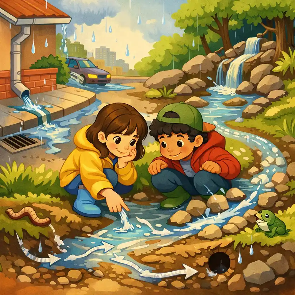 Você já parou para olhar o que acontece logo depois que a chuva começa? É nesse momento que dá para ver como a água da chuva encontra um caminho — e ele muda dependendo do chão, do relevo e até das plantas ao redor. Mesma chuva, destinos completamente diferentes.